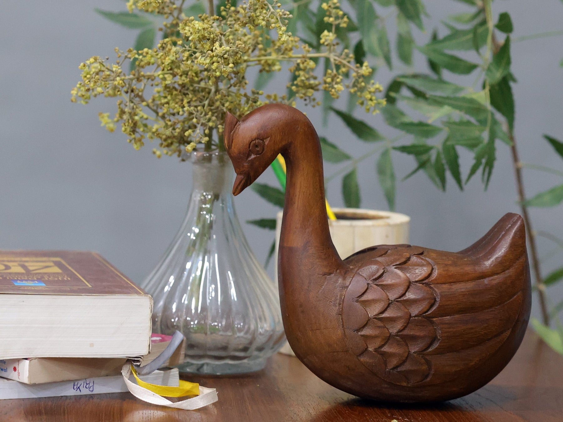 Classic Handmade Wooden Baby Swan Showpiece Animal Figurine